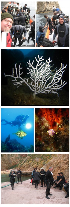 A primeira paragem foi numa gruta aos 28 metros de profundidade, aqueles que preferiram um mergulho com menos grau de dificuldade puderam realizar um “mergulho em parede” com a vantagem de observar uma vasta área com diversas gorgónias roxas (coral em forma de leque).